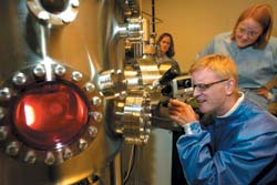 I et laboratorium på NTNU står tre unge mennesker foran et vakuumkammer av stål. Thomas Tybell kikker inn i et optisk termometer for å sjekke temperaturen. Bak ryggen hans følger Turid Worren og Kjersti Midtbø interessert med. Forskerne fra NTNU og SINTEF er i ferd med å lage materialer i form av tynne filmer, og akkurat nå blir et nytt lag til inne i kammeret. Ved hjelp av en ionisert gass bombarderer Tybell kildematerialet sitt med ioner, oksygen og argon. Lag for lag blir til når ionene slår løs atomer fra materialet og disse avsettes på underlaget. Tykkelsen på filmene som bygges opp kan måles i nanometer – en milliondel av en millimeter.