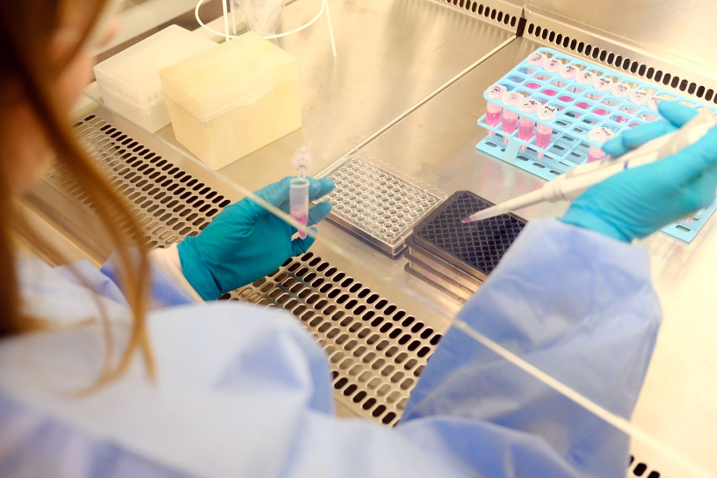 Forskerne sammenligner mange ulike alternativer for å se hvordan cellene liker å vokse på dem – her gjør Kari Hjelen klart til forsøk. Foto: Silje Grytli Tveten