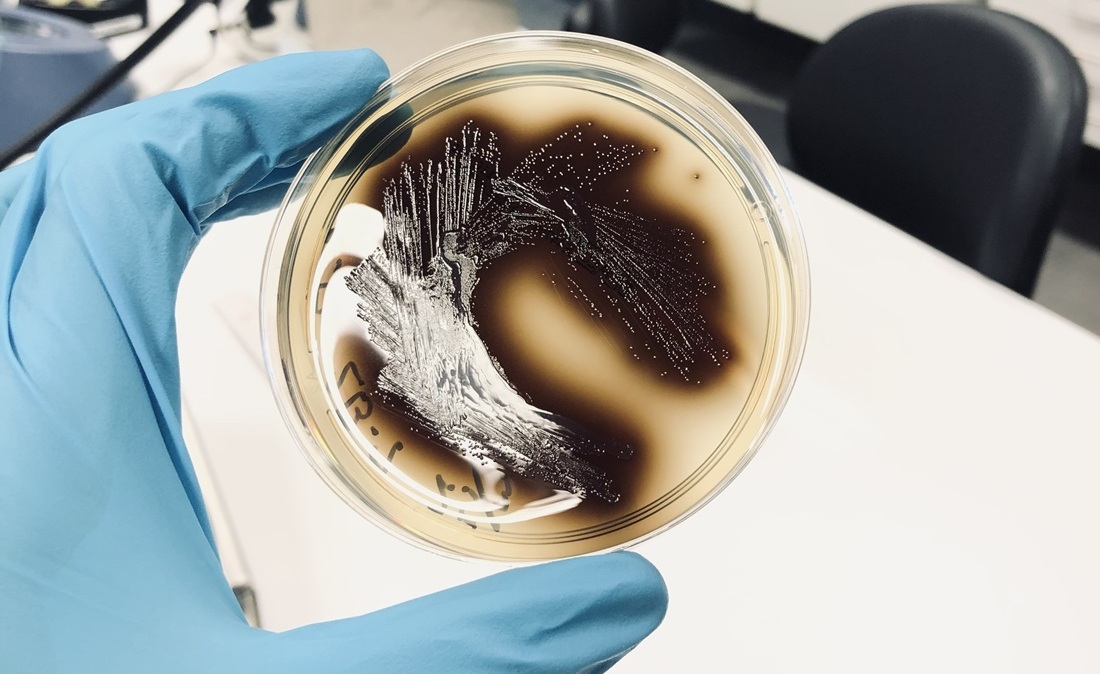 Bile Esculin Agar (BEA), et smart verktøy for å påvise Enterococcus, en tøff tarmbakterie som tåler gallesalter. Når bakterien bryter ned et stoff i agaren (esculin), reagerer biproduktet med jernsalt og danner den karakteristiske svarte fargen du ser. Dette er beviset på at vi har funnet Enterococcus. Foto: Thorben O. Reiche, NTNU/SINTEF