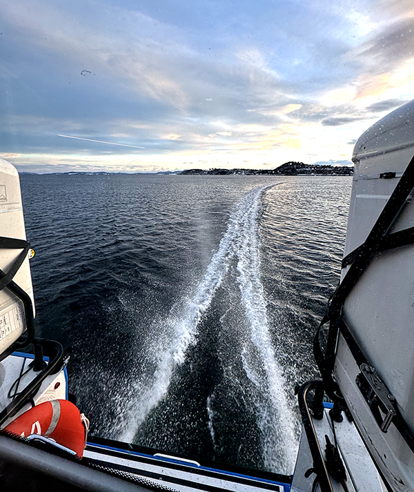 Sjøveien mellom Trondheim og Frosta tar godt under halve tiden sammenlignet med bil- eller busstransport.