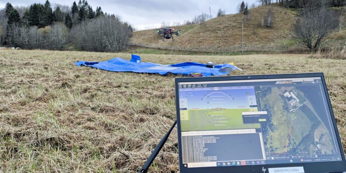 Federico Zenith arbeider med drone med lang rekkevidde,. Den er bygd på dronelaboratoriet til SINTEF Industri. Foto: SINTEF