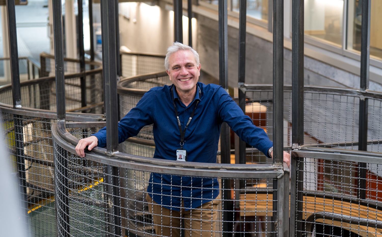 Professor Are Strandlie kan koste på seg et glis, for der han står er det isfritt. Foto: Karen Stampen, NTNU