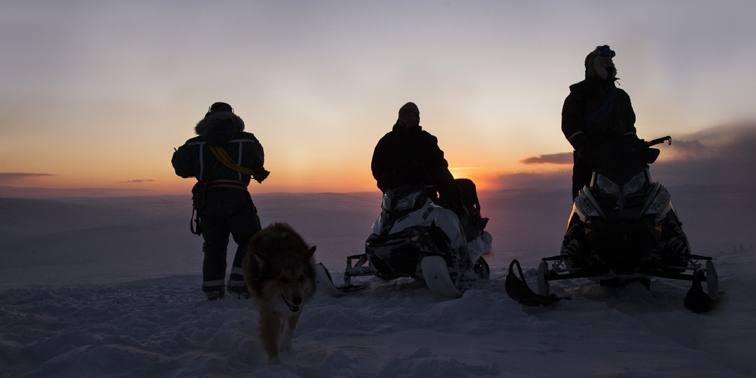 Tre reindriftssamer speider etter rein på vidda utenfor Kautokeino. Nå er Sarvvis og Aldu blitt offisielle stjernenavn. Foto: Heidi Dokter, NTB