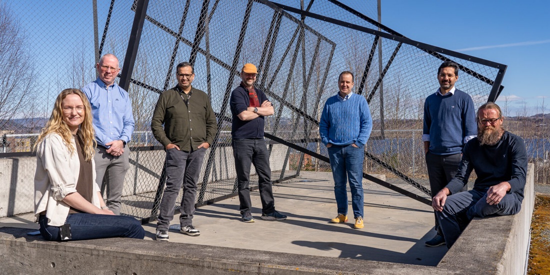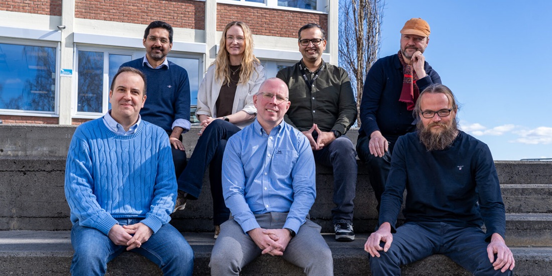 Colourlab‑teamet som står bak seks nylig innvilgede EU‑prosjekter. Fra venstre Anneli T. Østlien, Marius Pedersen, Aditya Sole, Jon Yngve Hardeberg, Marcos Xose Alvarez Cid, Sony George og Pål Anders Floor. Foto: Karen Stampen, NTNU