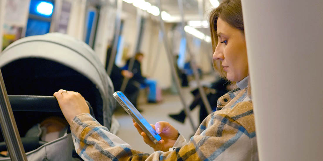 Dette er et urealistisk bilde, for egentllig snakker vi jo sjelden med fremmede på bussen. Foto: Colourbox