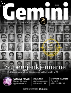 Gemini formidler kunnskap, forskning, teknologi og nye ideer med basis i forskning utført ved NTNU og SINTEF. Dette er en spesialutgave i forbindelse med SINTEFs 75-årsjubileum. Til daglig finner du oss på www.gemini.no. Denne utgaven har et opplag på 53 000. Redaktør SINTEF: Christina Benjaminsen E-post: Christina.Benjaminsen@sintef.no Tlf.: 404 50 452 Redaktør NTNU: Nina Tveter E-post: nina.tveter@ntnu.no Tlf.: 918 97 323 Redaksjonen: Sølvi W. Normannsen, Karoline Ravndal Lorentzen, Idun Haugan, Nancy Bazilchuck, Steinar Brandslet, Christina Benjaminsen, Anne S. Midling, Mads Wang-Svendsen, og Svein Tønseth. Ansvarlig redaktør SINTEF: Strategi- og kommunikasjonsdirektør Vincent Wego Fleischer Ansvarlig redaktør NTNU: Kommunikasjonsdirektør Sigrun Berge Engen SINTEF er et av Europas største forskningsinstitutt, med flerfaglig spisskompetanse innenfor teknologi, naturvitenskap og samfunnsvitenskap. SINTEF er en uavhengig stiftelse som har skapt innovasjon gjennom utviklings- og forskningsoppdrag for næringsliv og offentlig sektor i inn- og utland siden 1950. NTNU – Norges teknisk-naturvitenskapelige universitet – har over 43 000 studenter og ca 9000 ansatte. I tillegg til teknologi og naturvitenskap har vi et rikt fagtilbud i samfunnsvitenskap, humanistiske fag, realfag, medisin, arkitektur og kunstfag. Trykk: Fagtrykk Design/produksjon: Kolbjørn Skarpnes og Marianne Gilbu, NTNU Grafisk senter/NTNU Kommunikasjonsavdelingen Forsideillustrasjon: Kolbjørn Skarpnes 2025 Smart partnerskap I år feirer SINTEF, en av Europas største, uavhengige forskningsstiftelser 75 år. Det hele startet som en liten, men kraftfull protestaksjon. Etter andre verdenskrig ville styrende makter etablere Sentralinstituttet for industriell forskning (SI). Målet var å bygge kompetanse for industri og gjenreise landet. Men hvor skulle instituttet ligge? Norge hadde jo bare én teknisk høgskole og den lå i Trondheim. Likevel etablerte myndighetene SI i Oslo, i 1949. Dét falt ikke i god jord hos professorer ved NTH. De startet umiddelbart arbeidet med et eget oppdragsinstitutt i Trondheim. 40 år senere fusjonerte SINTEF og SI, og ringen var sluttet. NTNU og SINTEF har alltid hatt hverandre som viktigste partner innen forskning. Vi samarbeider om bruk av laboratorier, utstyr og bygninger, og har mange prosjekter og sentre sammen. Et samarbeid som styrker konkurransen ut mot verden. Her utvikles kunnskap og teknologi som er til nytte både i det offentlige og private. En rekke spinoff-selskaper har sett dagens lys i dette miljøet. Bladet du holder i hånden er også et eksempel på samarbeid. Her kan du lese om de norske Ugelstad-kulene som har reddet millioner av mennesker, om hvordan vi jobber med å skape nye selskaper med vår helt spesielle «oppskrift» og om SINTEFs spennende historie. Du kan også lese om de få av oss som har superkraften til å gjenkjenne forbrytere, og hva som gjør at jazzmiljøet i Trondheim tiltrekker seg verdens oppmerksomhet. For å nevne noe. God lesing! Tor Grande Rektor ved NTNU Alexandra Bech-Gjørv Administrerende direktør i forskningsstiftelsen SINTEF Foto: Terje Trobe Foto: Thor Nielsen 2 gemini • 2025